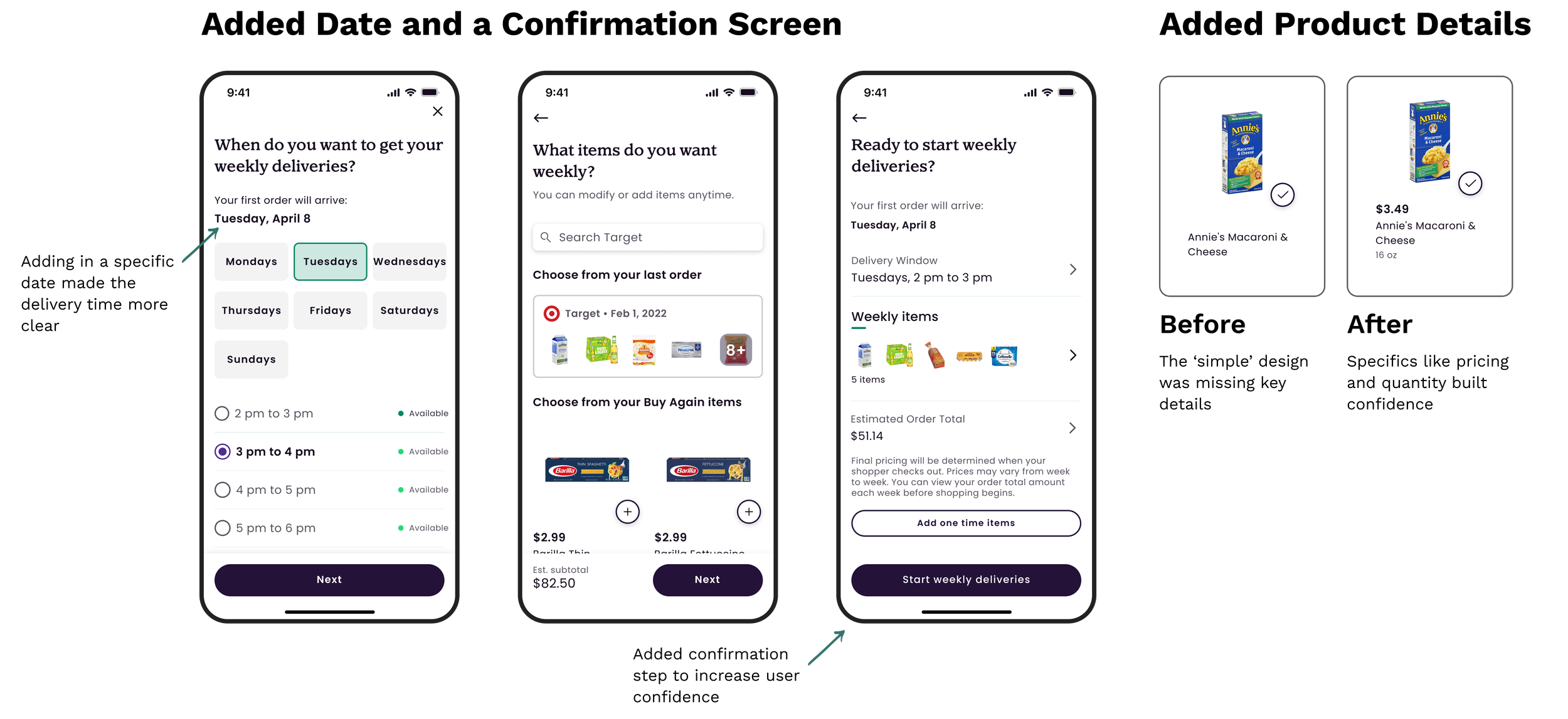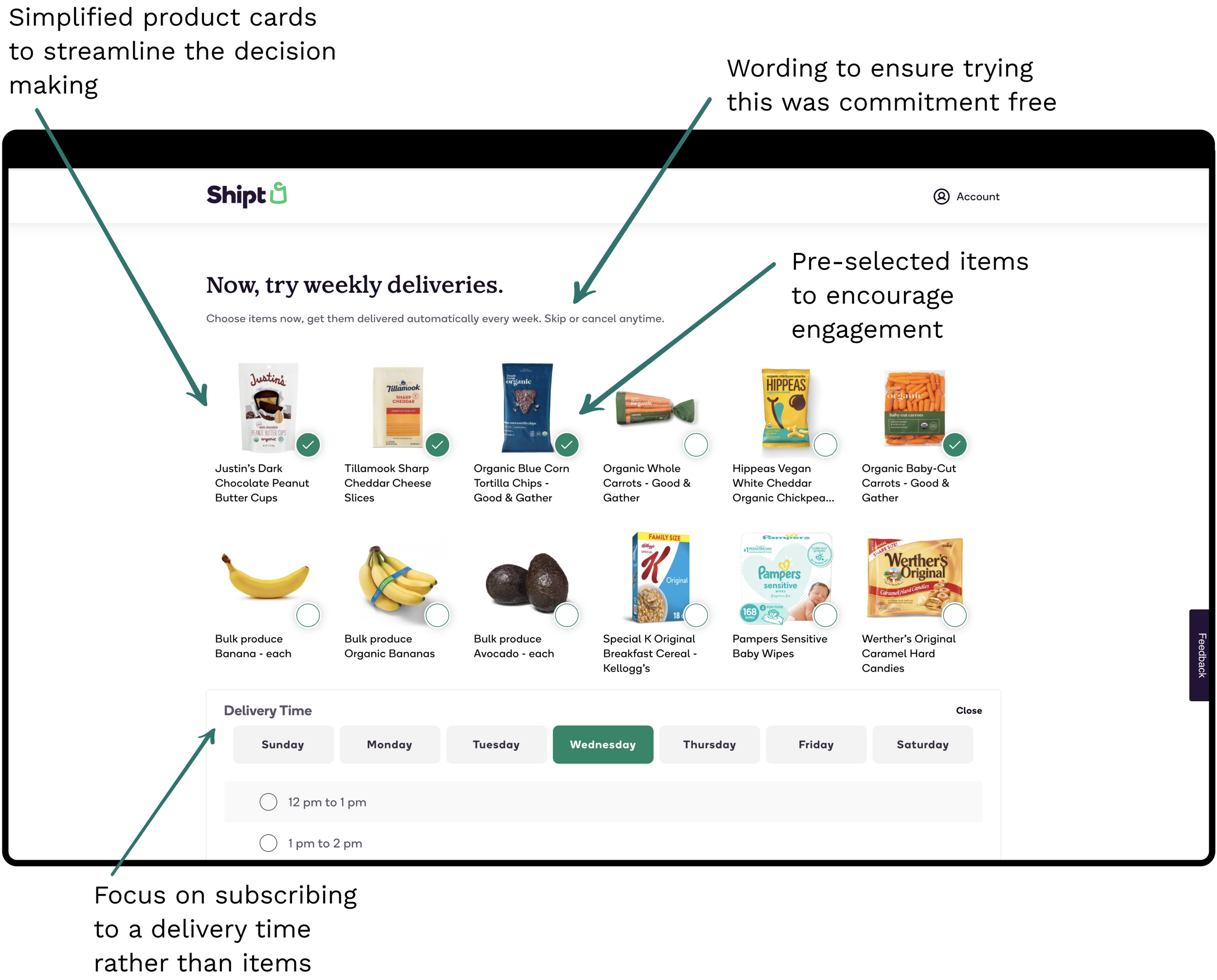 In this high priority project at Shipt, we explored how to automate the inherently repetitive process of ordering groceries in a way that was genuinely helpful to users and translated to more orders.